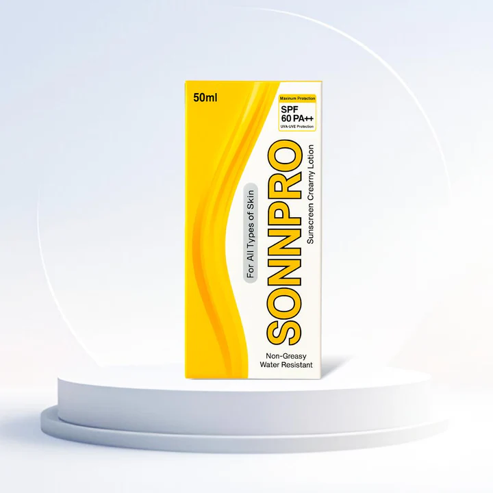 SONNPRO Sunscreen Creamy Lotion is a high-protection sun care product designed for “All Types of Skin”. Offering “Maximum Protection” with SPF 60 PA++, this lotion provides a robust shield against UV rays while maintaining a pleasant texture.